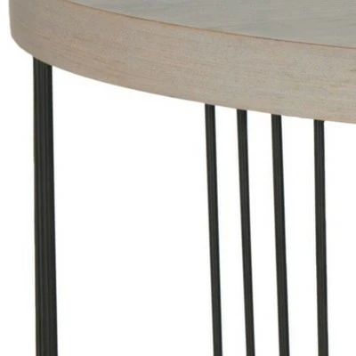 Add a fashion forward touch of geometry to your living room with the well-rounded Keelin gray wood grained coffee table. This contemporary piece sits on a circular base of black iron with thin graphic support strips for a see through look. Constructed from MDF wood and black colored iron, this sturdy coffee table is able to support up to thirty pounds. The Keelin coffee table is the perfect choice for Contemporary, Mid-Century, or Modern style living rooms.
