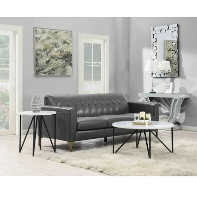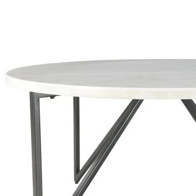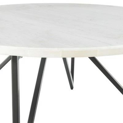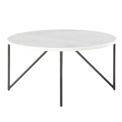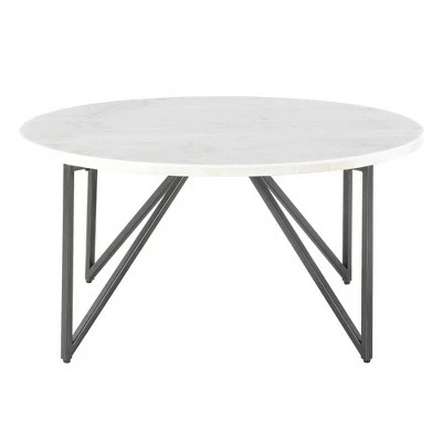 The Picket House Furnishings Kinsler Round Coffee Table is chicness goals! This coffee table has a white, marble table top and sleek, black metal legs. The contemporary design, will easily go with any existing décor or can be a great excuse to redo your entire living room! The legs feature a cool design and instantly update the look of the traditional coffee table.