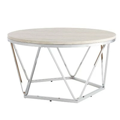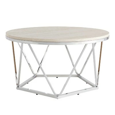 Find your style angle with the Aiden Lane Laconia Faux Stone Round Coffee Table. A faux travertine top with metal base adds function and a glamourous feel to your home.