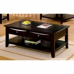 Keep your favorite knick-knacks hidden out of sight with the help of the HOMES: Inside + Out Langen Modern Rectangular Coffee Table. Updated detailing creates a dimensional feel that stylizes a classic silhouette. Deep espresso offers a sleek, dramatic finish with bold personality and perfect versatility. Two spacious drawers provide a home for remotes, batteries, essentials and more while the end-to-end open bottom shelf houses any larger pieces such as books, magazines and even storage baskets.
