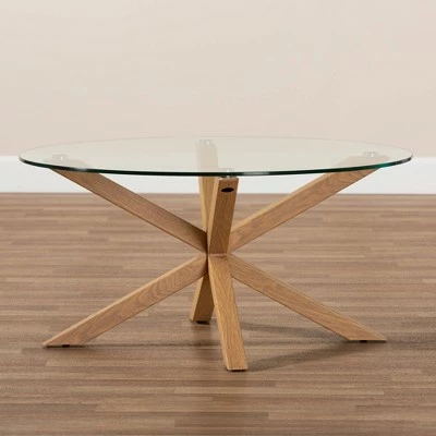 Create a striking focal point in your living space with the Lida coffee table. The Lida features a round glass tabletop that gives any space an open, airy feel. The clear glass highlights the unique sculptural base, constructed from metal overlaid with a woodgrain finish. Place a few books and a potted plant on top to complete the look. The Lida coffee table is made in China and requires assembly. Dimensions: 15.75″ High x 32.28″ Wide x 32.28″ Deep;