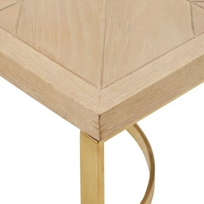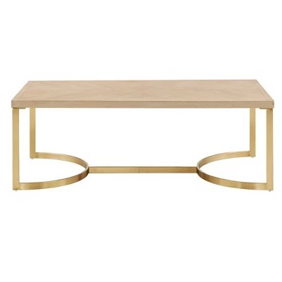 Make your living room the most stylish and sophisticated room of your home with the addition of the Madeline Natural Finish and Gold Coffee Table from Inspire Q. Choose from a coffee table or a set that includes a coffee table and a matching end table. Both pieces of this set are built to last with a construction consisting of oak, veneer, and stainless steel. The oak and veneer table tops display an artful, natural wood grain finish that is beautifully complemented by the shiny gold metal base for a refined look of elegance.