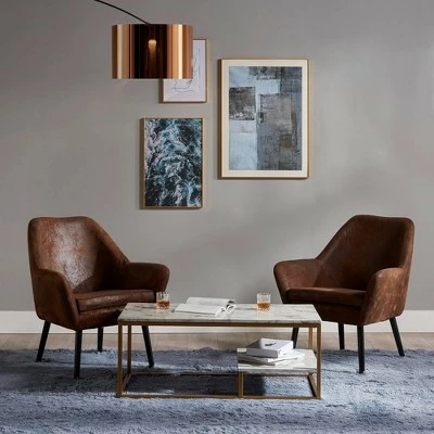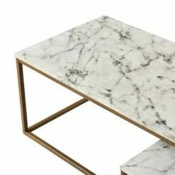 - HIGH QUALITY MATERIAL: The durable coffee table is made up of MDF and sturdy brass brushed frame. PREMIUM FAUX MARBLE TOP: This beautiful coffee table is stain and scratch resistant which can be paired with our matching Marmo collections to create the perfect harmoniuos setting.