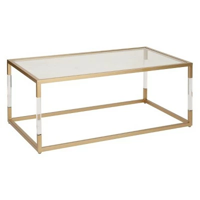 - This gold acrylic glass coffee table features inlays of a rectangle transparent glass and acrylic bars