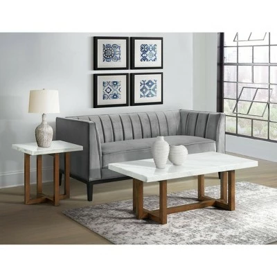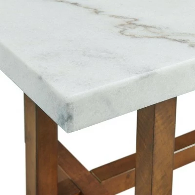 The Picket House Furnishings Meyers Marble Rectangular Coffee Table is going to look fantastic in your living room! This accent table features a white, marble table top that pairs beautifully with the warm, chestnut table base finish. Natural, marble veining throughout the table top is going to instantly be a standout in your living room. Another cool feature about this living room staple is the contemporary table base. The table base gives an updated look to this classic design, adding even more interest to this stunning piece. Add this coffee table to your home today for a look you’ll love coming home to, day after day.