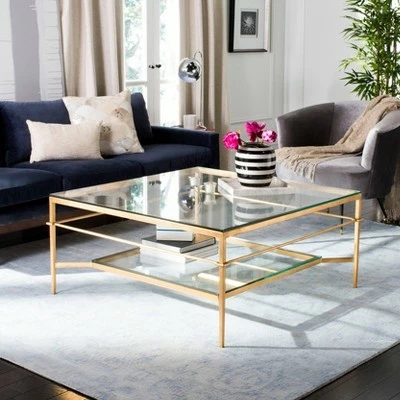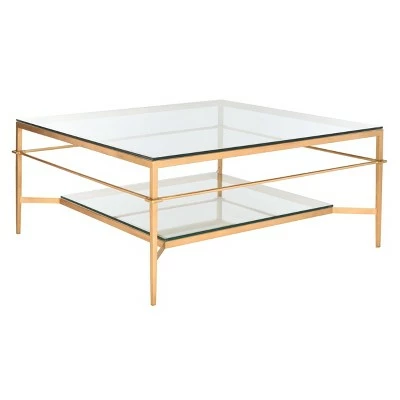 The luxurious Mieka gold leaf cocktail table is designed for elegant entertaining in transitional living rooms. It’s see through glass shelves give it the appearance of sculpture, while providing a practical, easy care surface for drinks and canapés. This simple yet elegant design is an easy to match and style piece that every home needs. It can support up to twenty lbs. The Mieka Cocktail Table is the ideal choice for Modern or Transitional style interiors.