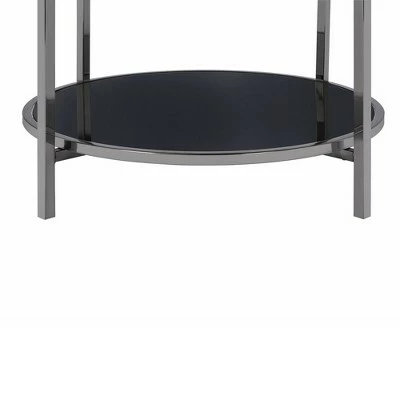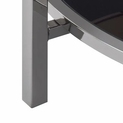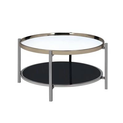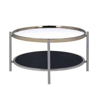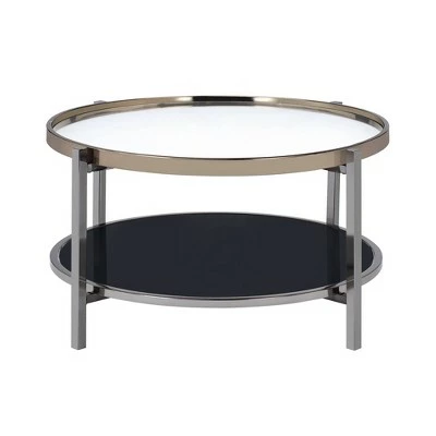 The Picket House Furnishings Monaco Round Coffee Table is the perfect addition to your home! This coffee table features a mirrored table top, that is also tray like; so everything will stay on the table and not fall off! The table top edge is finished in a gold, while the legs are in a dark nickel.