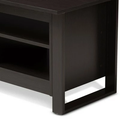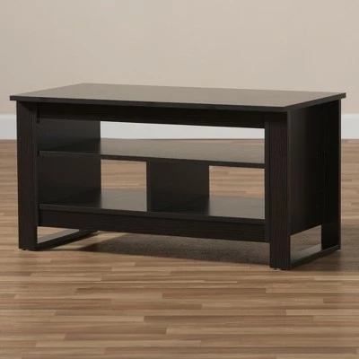 The Nerissa coffee table is both practical and stylish. The modern and contemporary-inspired design emphasizes clean lines and geometric shapes. The Nerissa is finished all over in a welcoming, wenge brown. The table features a smooth, rectangular table top, with three open storage compartments underneath. The open shelf spaces beneath the table top are ideal for storage or displaying decor, making the Nerissa a great option as an accent table. The legs of the table are straight and have a connected leg style. Made in Malaysia, the Nerissa requires assembly.