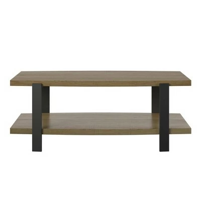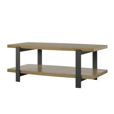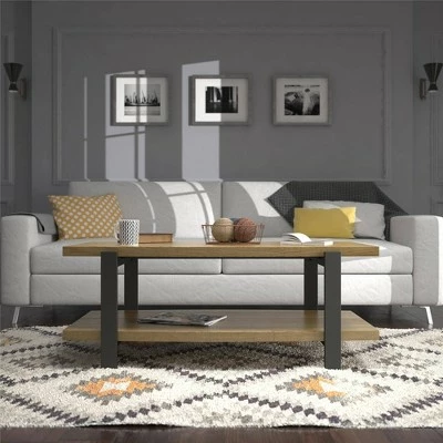 Upgrade your living room with the Room & Joy Newton Coffee Table. The spacious table top and lower shelf provides plenty of space to organize remotes, books, magazines, and tablets. The lower shelf keeps the table top clutter free and keeps essentials within arm’s reach. The laminated hollow core table top and shelf are accented by the powder-coated metal legs for a stylish design and durable build. The Coffee Table ships flat to your door and requires assembly upon opening. Two adults are recommended to assemble. Once assembled, the Coffee Table measures to be 18.375″H x 47.25″W x 24.125″D.