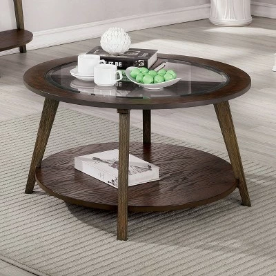 Elegant yet understated, this round coffee table from the Nicolina collection lends itself perfectly to a mid-century modern living room. Featuring a dark oak wood finish and angled legs, this coffee table adds a charming yet dapper vibe to any space. Set this table in front of a sofa for easily accessible refreshments and snacks, as well as photo look-books.