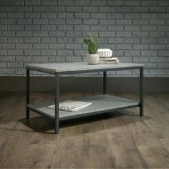 A living room just isn’t quite complete without the perfect coffee table. Create a beautiful centerpiece in your home when you add the industrial-inspired design and beauty of this coffee table from the North Avenue collection. This concrete-looking coffee table offers a spacious top surface that provides you with all the room you need for couch side necessities like coasters, your reading glasses, stacks of magazines and of course your hot cup of coffee. It also makes a great spot to display home dĆ©cor items like decorative plants and knick-knacks. This metal coffee table also features a lower open shelf for additional storage space for items like books and organizing bins. This contemporary coffee table is finished on all sides for versatile placement throughout any room in your home. Finished in Faux Concrete and paired with a durable, black metal frame, this stunning coffee table will stand out in your home.