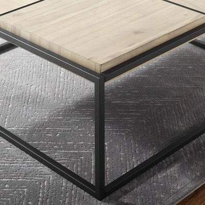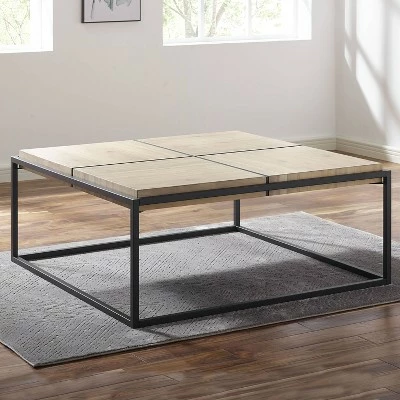 The Oaklee cocktail table brings grand scale and contemporary style to any living room. The generously scaled 48-inch square table is designed to pair beautifully with sectionals or large area rooms. The acacia veneered four-panel top design is finished in a natural honey that is the perfect contrast to the mixed-media dark gray iron base.