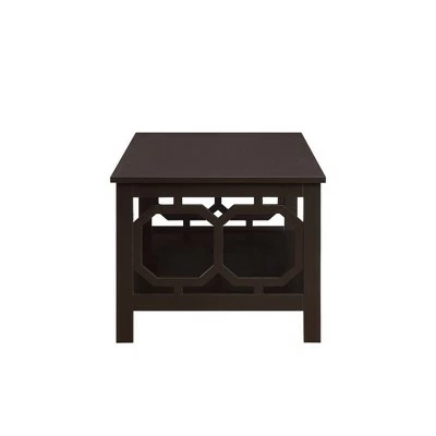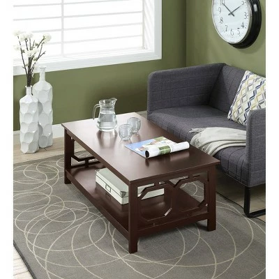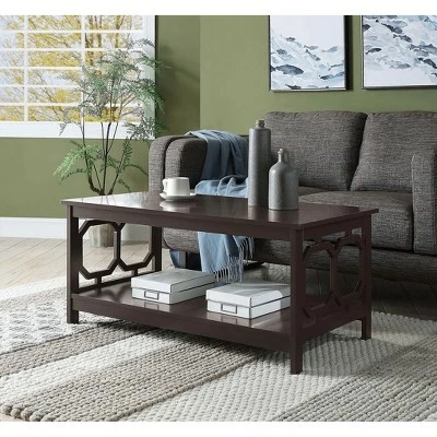 Reinvent your living room with the Omega Coffee Table with Shelf. The simple yet eye catching design showcases clean lines and beautiful octagon cut outs on the sides. Available in multiple finishes it is sure to complement any home decor. Featuring a lower shelf that provides usable display space. Engineered for durability this piece will become a staple in your home. Look for other items from the Omega Collection for the complete look sold separately.