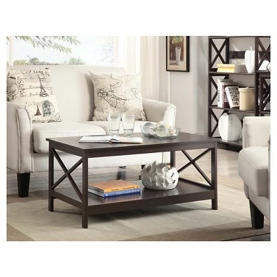 The Oxford Coffee Table with Shelf by Breighton Home is a great addition to any home. Available in multiple finishes, it is sure to complement any home decor. Featuring a bottom shelf that provides plenty of space to display collectibles or every day necessities with ease of access. Coordinating pieces are also available, sold separately.