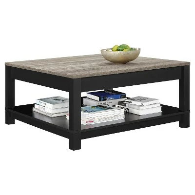 Add a touch of sophistication to your living room with the Room & Joy Paramount Coffee Table. The soft finish will blend effortlessly into any decor style, and the distressed woodgrain top gives the table a rustic charm. The coffee table features a bottom storage shelf ideal for holding books and magazines so the top surface can stay open and free of clutter. The table is made of painted MDF and laminated particleboard. It stands at 17″h x 35.4″w x 35.4″d and is recommended to be assembled by 2 adults.