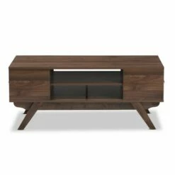 Ashfield Mid Century Modern Walnut Finished Wood 2 Drawer Coffee Table Brown – Baxton Studio