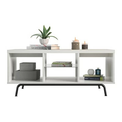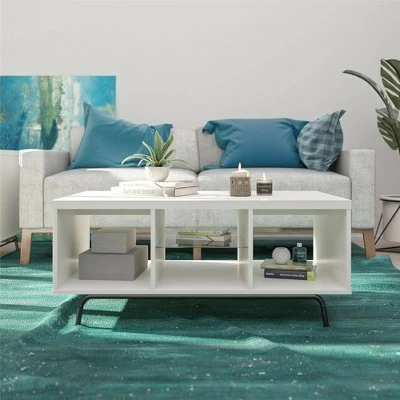 Step away from the ordinary and give your living room a modern makeover with the Room & Joy Hannaford Coffee Table. All of the shelving can be accessed from either side of the Coffee Table so you always have easy access to reading material, remotes, or other electronics. The middle shelf is made of tempered glass for a fun and modern look for your space. The 2 larger side shelves are ideal for books and magazines or displaying photos and decorations. This Table has a mix of laminated particleboard and MDF with metal feet and tempered glass shelving. Combined together this Table makes for a very sturdy addition to your room. The Table ships flat to your door and requires assembly upon opening. Two adults are recommended to assemble. After assembly, the Table measures to be 18”H x 42”W x 23.5”D.