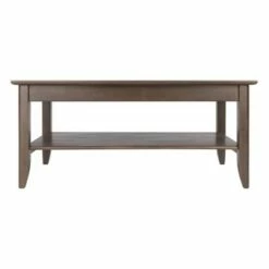 Bring distinction and balance into your home with the Winsome Wood Santino Coffee Table. Crafted in a contemporary oyster gray, and featuring a wood inlay in a darker gray tone that adds depth and distinction all while creating a sense of warmth, together offering a unique centerpiece for your living room. A wide lower shelf is ideal for books, magazines, and stowing remotes and personal electronic devices. Softly-finished edges on the tabletop and tapered legs present a simple and elegant silhouette in any room. The table frame is made of solid wood with the contrasting inlay constructed of composite wood with wood veneer overlay for long-lasting beauty and durability. Coordinate this coffee table with other furnishings from the Winsome Santino collection for a cohesive look throughout your home (each sold separately). Conveniently packed and shipped in 1 box that includes the hardware necessary for assembling. Replacement part request can be submitted directly to the manufacturer within 60 days from date of purchase.