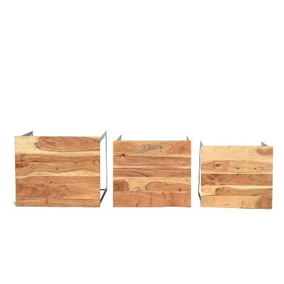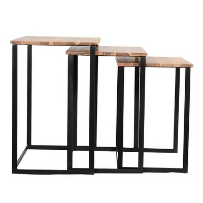 A right choice of furniture to be placed in any space, these beautiful nesting coffee end tables will give a modern look to your room. These are built in acacia nilotica wood with a strong metal base that makes them one of a kind with long term durability. These tables comes in different sizes as a set of three.