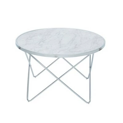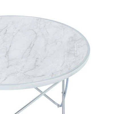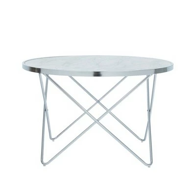 - INCLUDED: 1 coffee table with faux white marble and silver metal finishes.