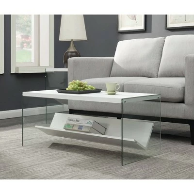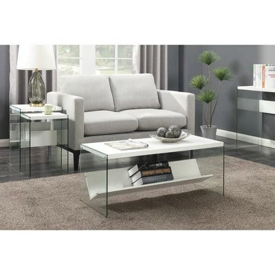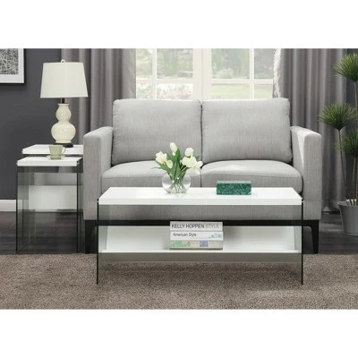 Add a modern twist to your living space with the SoHo Coffee Table with Shelf by Breighton Home. The sleek tempered glass sides and spacious tabletop accommodate books, beverages, and much more. Sturdy and designed for easy moving, this accent coffee table is ideal for placement in your living room, office, or entertainment area. Utilize the bottom shelf for your favorite books, movies, or other storage needs. Available in multiple finishes, pair with additional pieces from the Soho collection by Breighton Home, each sold separately.