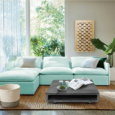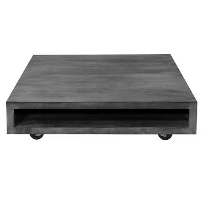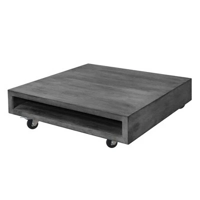 Rejuvenate your living space decor setting and enjoy your scrumptious evening snacks and coffee on this coveted Coffee Table which will be the talk of the town in your convivial gathering. Constructed from Mango wood which ensures prolonged durability with extended molded details along the opening , it is accented with striking Gray color finish which is complemented with subtle grain details. Incorporated with an open bottom shelf to keep magazines and books, it rests sturdily on casters which offers it easy mobility.