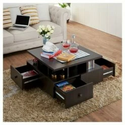 Alaterre Furniture 28″ Ryegate Natural Brown Live Edge Solid Wood Cube Coffee Table Metal And Wood
