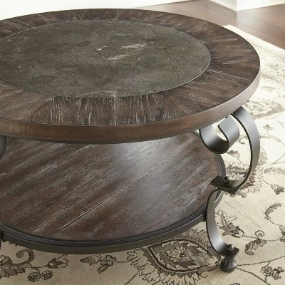 The perfect blend of traditional and rustic design elements exists in the Mulberry Round Cocktail Table from Steve Silver Co. Combining metal and wood, this round coffee table features a 36-inch tabletop with a two-tone design, and the smaller bottom shelf offers a complementary finish. The scrollwork legs provide stand-out style that pulls the whole look together, and the metal frame offers a stable base for a surface you can count on.
