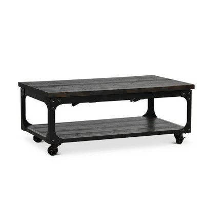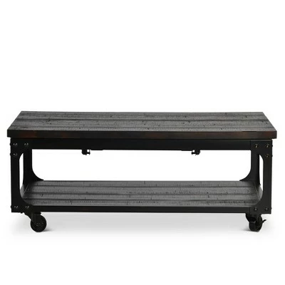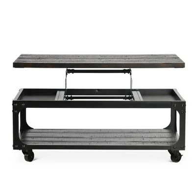 Add style and comfort to your living room or den with this Sherlock Lift-Top Cocktail Table from Steve Silver Co. This unique lift-top coffee table comes in a gray finish for a look that’s easy to style, and the metal frame has an industrial look you’ll love. Space below the tabletop offers out-of-site storage, and the mounted tabletop can be lifted to sit closer to the couch. Wheels add the perfect finishing touch while making this piece easy to move, and you’ll love the visible wood grain that adds extra style.