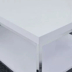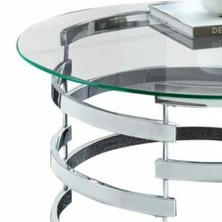 - Contemporary glass and metal coffee table with a circular design