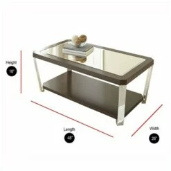- Tinted glass top holds small decor or a book with a coffee mug easily