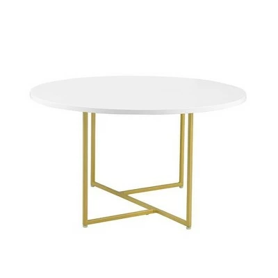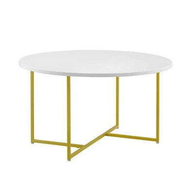 Flaunt your interior design prowess with the Stevenson Coffee Table. This modern coffee table is ideal for small spaces, whether you’re hosting game night or sharing your favorite bottle of wine on date night. The gold openwork base has clean, geometric lines that offer a modern lift to the free-flowing round table top, giving Stevenson a light and airy look. Alone or styled with your favorite books, flowers or collectibles, this coffee table creates an interesting, welcoming focal point in any room.