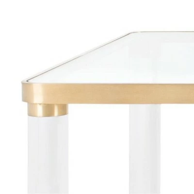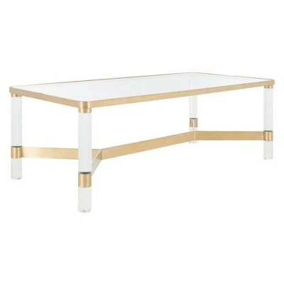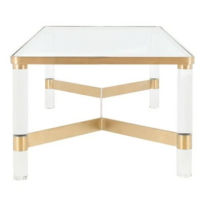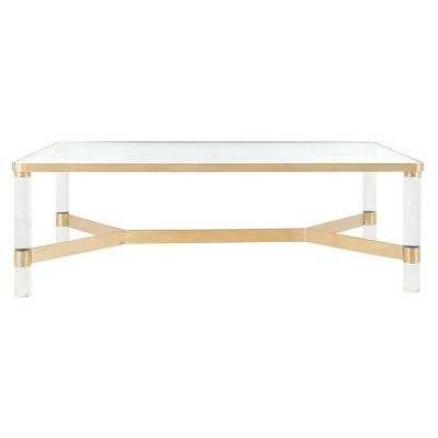 Haute design. Inspired by lots at the legendary Yves St. Laurent auction, the Suzanna Coffee Table from Safavieh revels in the good life. Acrylic, brass and glass recreate the glam seventies style espoused by the original jetsetters. Cocktail glasses not included. Sleek and modern, the Suzanna Acrylic Coffee Table is available in two colors to best suit your personal tastes and decor.