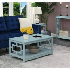 Update your home with this beautifully crafted Town Square Coffee Table with Shelf by Breighton Home. This simple yet eye-catching coffee table showcases a symmetrical Asian-inspired design with its unique square side panels. The large spacious tabletop and the open-concept bottom shelf provide the perfect space to display décor and store entertainment essentials. Crafted from MDF and finished with non-lead-based paint, this transitional table is built to last. Shop a wide variety of finishes and styles available from the Town Square Collection by Breighton Home, each sold separately.