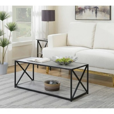 The Tucson Coffee Table with Shelf is a great addition to any home. Available in multiple finishes and black cross frame, it is sure to complement any home decor. Featuring generous top surface and bottom shelf that provides plenty of space to display collectibles or every day necessities with ease of access. Whether you use it in the living room, or any other room it will be sure to make a statement.