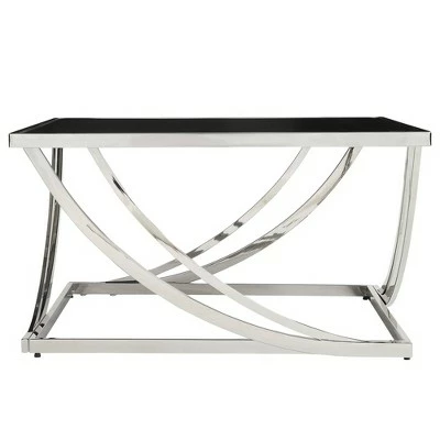 Keep your space eccentric and intriguing with the Tyron Steel Arch Curved Sculptural Coffee Table with Black Glass Top from Inspire Q. with a striking chrome base and black tempered glass table top, this table will have your guests talking! The bold black top creates an eclectic ambiance and atmosphere in your living space. Utilize the spacious tabletop to display your flowers, lamp, or favorite family photos. Upgrade your living room with this stainless steel and nickel end table to create the perfect modern style to your home!