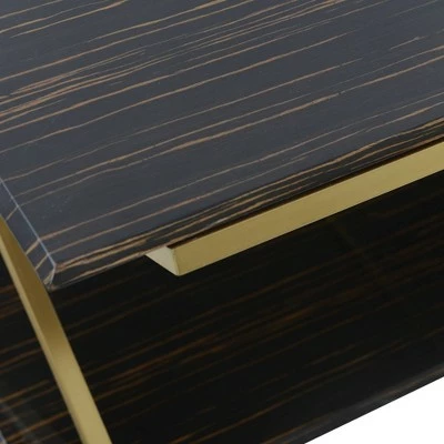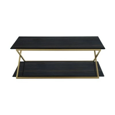 The Westlake Dark Brown Woodand Brushed Gold Coffee Table from Armen Living is what your living room needs to take your home decor to the next level. The Westlake table features dual resting shelves that maximize your storage space – giving you ample surface area to place your favorite personal items or decorative centerpieces. The wood of the coffee table is waterproof and wear-resistant, fighting off everyday wear and tear and giving you years of enjoyment. The craftsmanship shown through the design of the table is very apparent – the rich gold accents, the unique x-shape frame, and the gorgeous wood all contribute to this special piece.