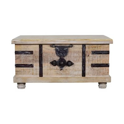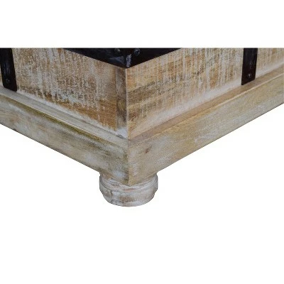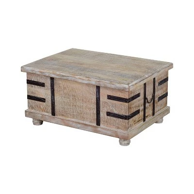 Provide your guests with a riveting experience and at the same time redefine the aesthetics of your interior with the inclusion of this farmhouse style inspired Coffee Table. Incorporated with a lift top opening mechanism which reveals a storage compartment to keep your interior clutter free, the metal inlays all over the frame is sure to impart an enchanting vibe to your decor setting. Constructed sturdily from mango wood frame for prolonged durability, the lift top mechanism is facilitated with metal hinges for easy opening. Accented in a hue of distressed brown and complemented with an antique black finish, it comes with side handle for portability. Supported sturdily on block legs, it can be placed besides your sofa set to enjoy your scrumptious snacks and beverages. The barn style lock like design at the front panel provides a deceiving appeal to it. Though farmhouse in style, it can blend with a variety of decor settings.