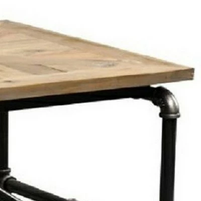 Featuring industrial style, this sturdy wooden constructed coffee table is here to serve the best of its purpose. The rectangular shaped top with pipe design base and A shaped trestle support adds to strength and also durability. The casters add to the portable function of the piece.