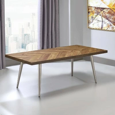 Mid-century modern style combines with a rustic top to create the Worth Cocktail Table. Polished with a bit of edge, this Cocktail Table can be dressed up or down to suit your taste. The Silvershield® top gives a rustic, wood appearance while resisting stains and scratches. Canted metal legs give the table a modern look for today’s living rooms. Your purchase includes one cocktail table.
