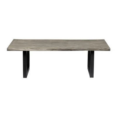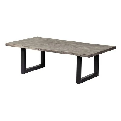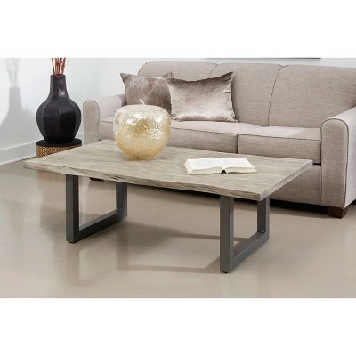 The live curved edges and the subtle Sandblast gray finish showcase the natural beauty of the rich acacia wood on our stunning Cocktail Table. Perfectly supported with wide and squared “U” shaped metal legs in a deep gunmetal finish, this Cocktail will look amazing in your den or game room, where the spacious top will be ideal for showcasing your large art books and holding a tray of snacks when guest drop by.